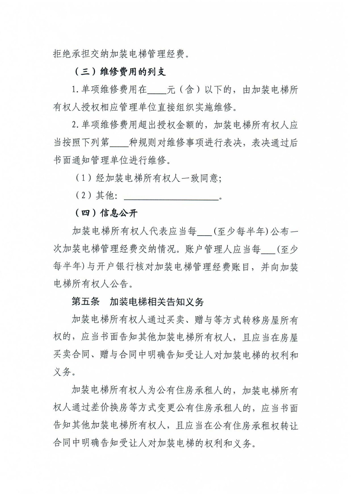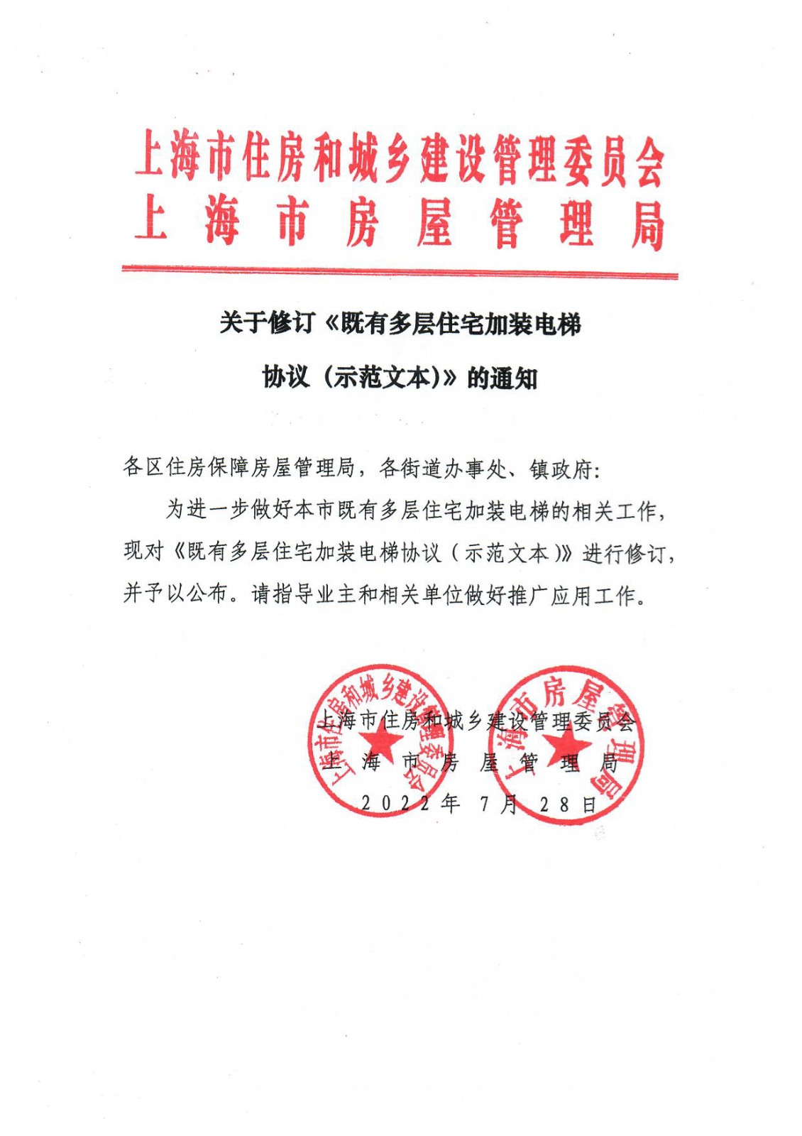 关于修订《既有多层住宅加装电梯协议(示范文本))》的通知