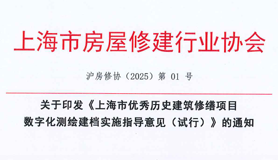 - 关于印发《上海市优秀历史建筑修缮项目数字化测绘建档实施指导意见(试行)》的通知 2025-12-15
